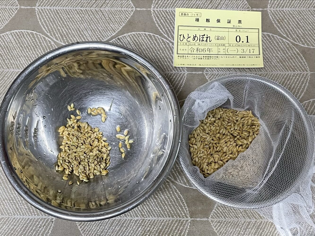 購入したひとめぼれの種もみのうち適した重量を持っていたのが約8割位。