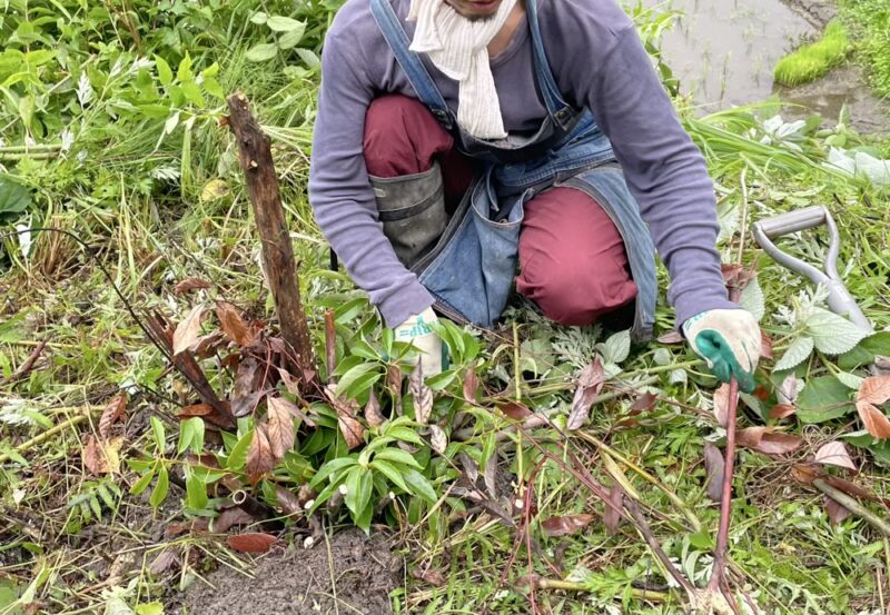 時には、細くて深い点穴、と言われる穴を空けて、そこに枝を刺したりします。