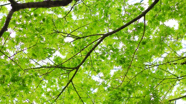 この枝、もともと、上にのびたかったのに、上が混み合っているせいで、下に出てきたものらしい。