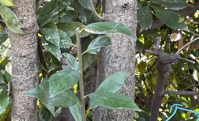 ぐわ〜んと,回り込んで伸びてる枝とか、ねじれながら隣の枝を巻き込むように伸びる枝。キッツキッツに2本並んで生えてる枝。去年切ったと思われる枝のてっぺんから四方八方に伸びる多量の枝など。