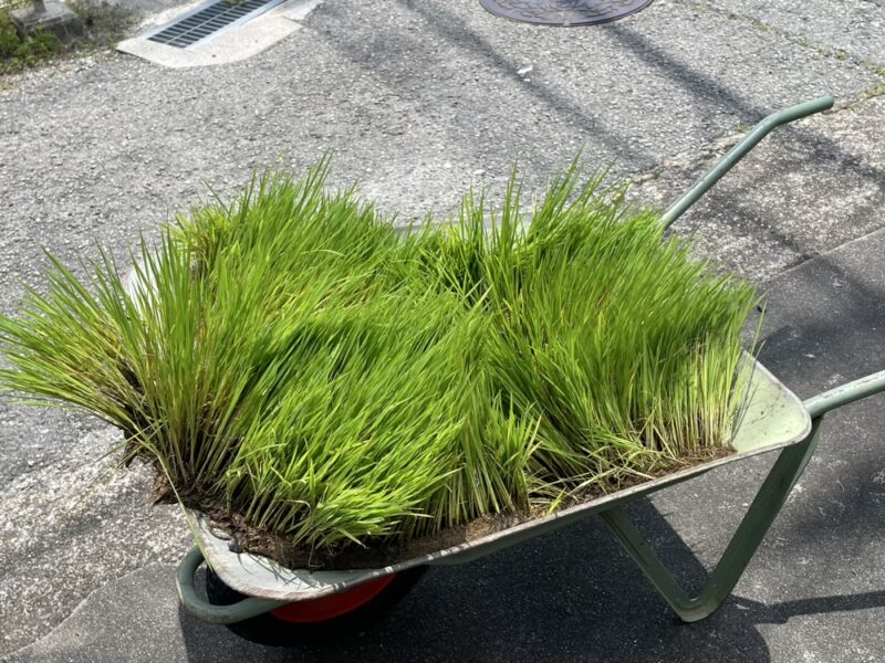 自分の育てた苗は、今まで関わってきたコミュニティのネットワークの中で、すべて旅立ったのですが、オーナーさんの田んぼでは、田植えが終わった後にまだ苗箱2つ分くらいの苗が余っていました。