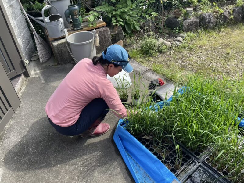 田んぼで田植えをした日、田んぼではない場所でも田植えをしました。