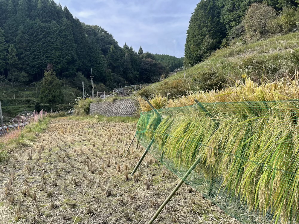 そして干し終わったら、鹿よけのネットをかけて、今年の稲刈り完了です!