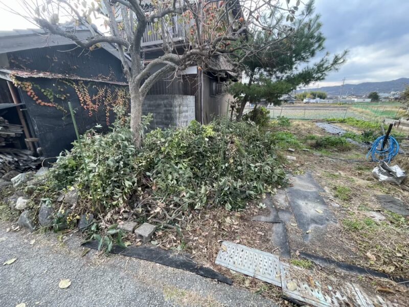ノコギリ鎌、スコップ、剪定ハサミ、ノコギリなど(あれば)